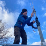 I only use one ring with three guy lines on it. I have the ring at the base of the topmost section. I have a second ring that I leave on at the bottom of the second section, just in case it ever gets really rowdy, but I don’t preemptively tie lines to it like I do the top ring. If we got into those sorts of conditions, I would lower the mast to tie on the extra lines. I’ve never had to do that yet, though I usually end up tying out the top three lines.